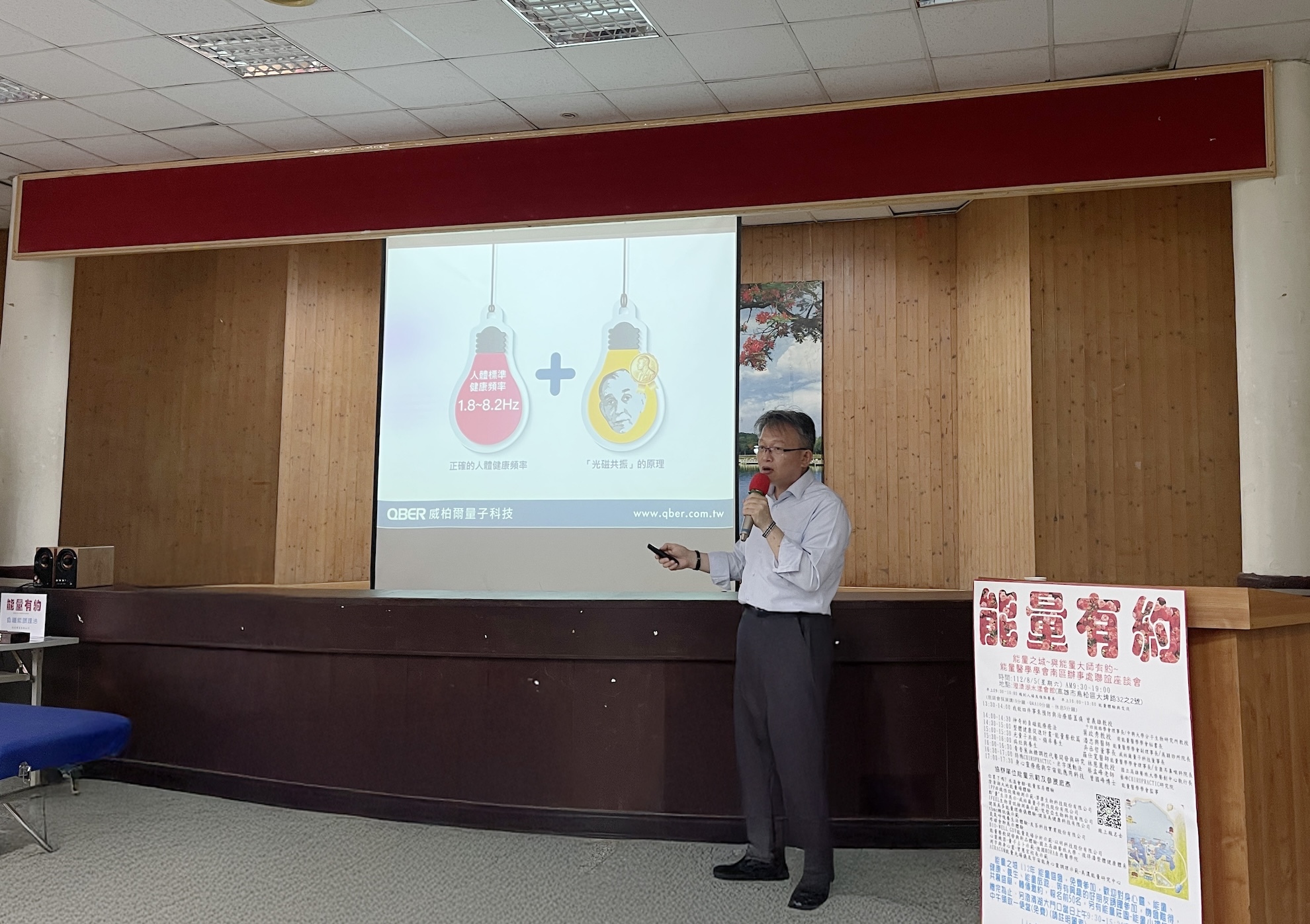 在活動中,由創辦人-吳董事長分享 QBER 的核心技術——精準頻率共振。他以淺顯方式,帶領與會者了解光量子頻率如何透過非藥性、物理性的方式,融入日常生活,協助大眾在繁忙的現代環境中維持更佳的能量平衡。